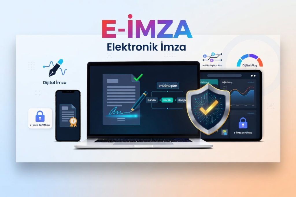 E-imza, elektronik ortamda yapılan işlemlerde kimlik doğrulama sağlayan ve ıslak imza ile aynı hukuki geçerliliğe sahip dijital imzadır. Türkiye’de 5070 sayılı Elektronik İmza Kanunu kapsamında yasal olarak geçerlidir ve tüm resmi işlemlerde güvenle kullanılabilir.
